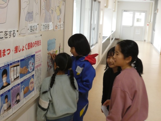 保健室前の「まちがいさがし」に楽しそうに取り組んでいました。