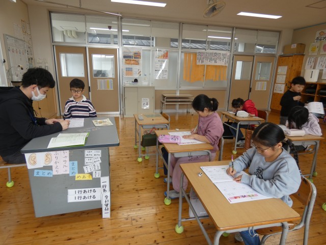 書写の学習で、「中心を意識して書く」ことをめあてに、真剣に取り組んでいました。