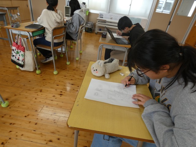 卒業記念文集づくりをしていました。今日は表紙づくりでした。