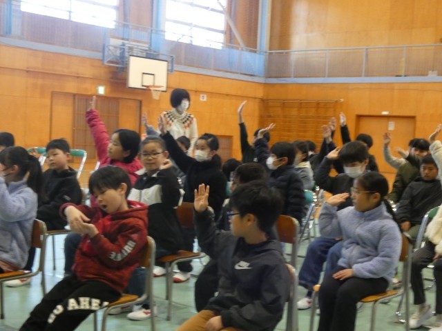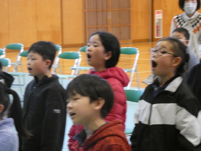 校歌は、全校で歌います。体育館全体に元気な歌声が響くようになりました。