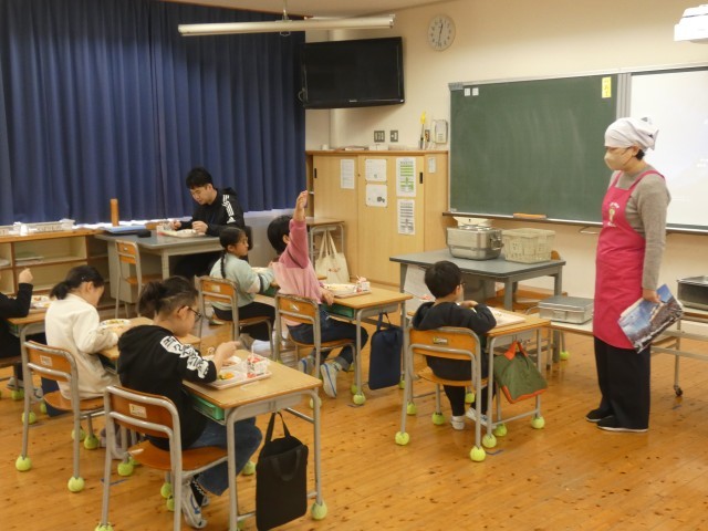 草加部学校食育センターの原田先生が給食時間に各教室を回っていただきました。