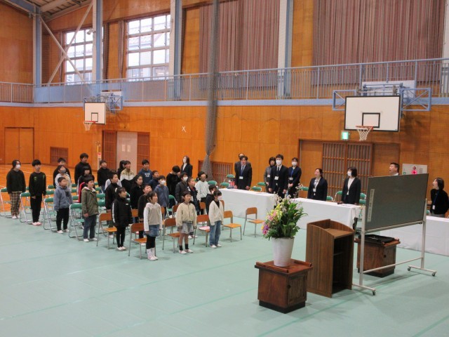 校歌を全校で歌いました。心がこもったすてきな歌声が体育館に響きました。涙のお別れとなりました。