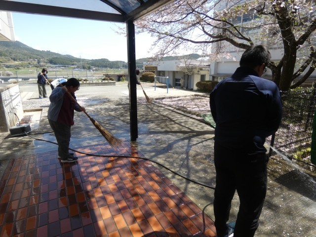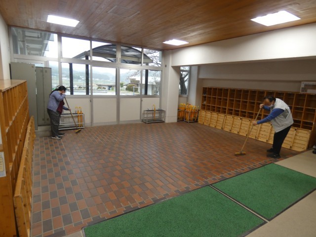 心を込めて、ろうか、下駄箱、児童玄関、トイレなどをはいたり、拭いたりしました。