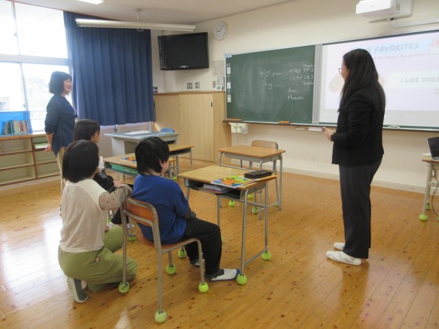 5年生では、新しく着任されたALTの先生、コマリン・デビー先生と楽しく英語の学習をしていました。