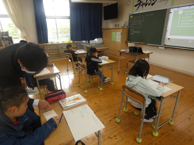 子どもたちは、いつものようにしっかり前を向いて学習に取り組んでいました。