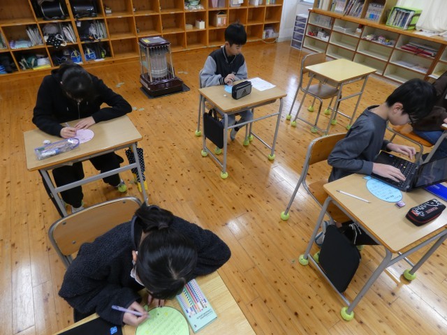 12月12日(金)☆学習面・生活面の成果☆①聴く→説明する5年算数では「三角形の面積」の求め方を学習していました。自分の考えを図や矢印を使って、友達に分かりやすく説明する姿が見られました。②一人で考え...