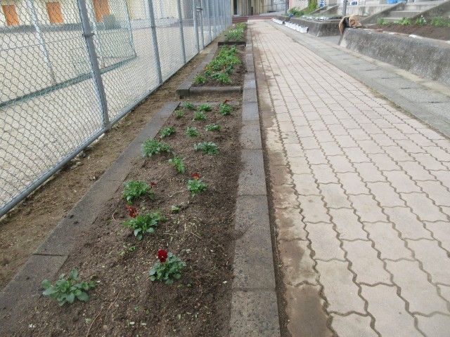 本日、からすがせんの会の皆さんに、花の植え付け作業をしていただきました。学校がとてもきれいになりました。ありがとうございました。