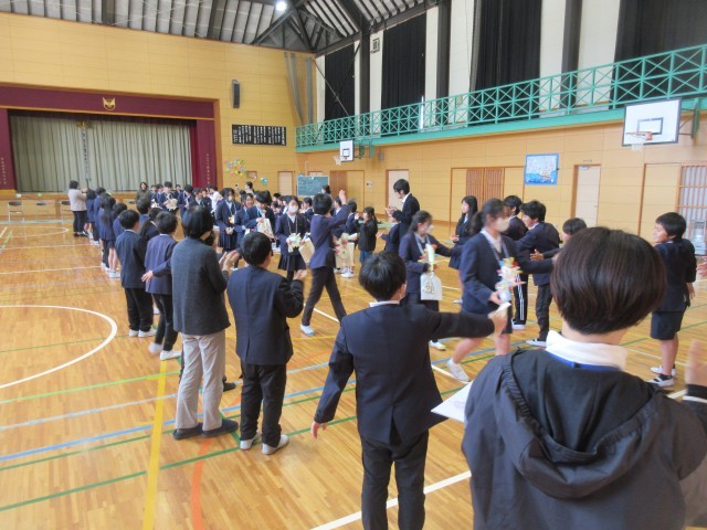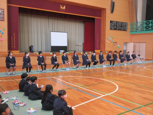 今日、卒業を祝う会が行われました。お世話になった6年生に感謝と卒業をお祝いする気持ちを伝えました。各学年の出し物やプレゼントなど楽しい時間を持つことができました。中心になって活躍した5年生ご苦労様でした。