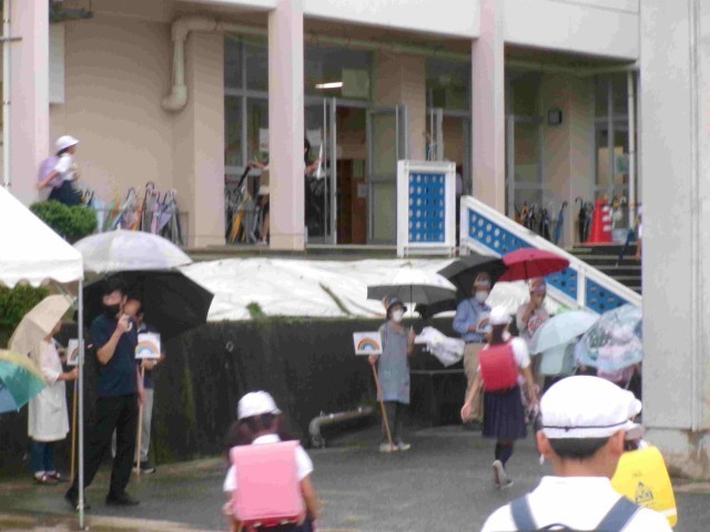 本日は雨が降る中でしたが、いつものように早朝より来校してくださり、気持ちの良いあいさつの声かけをしていただいています。