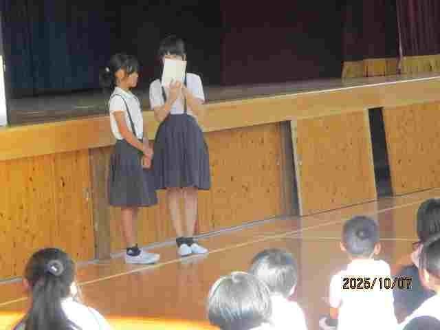 今朝は全校朝会において、5日の運動会の表彰式を行いました。