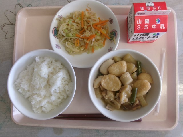 最近、給食の記事がないですねとのご指摘をいただきました。暑かった夏から10月に入り、秋を感じる季節になってきました。10月17日には、給食メニューは「おでん」でした。いよいよ本格的な秋メニューになりました。