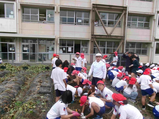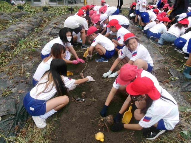 実りの秋!ついについに、サツマイモ掘りをペア学年ごとに行いました!昨年度から始まった一大イベントです。今年もペア学年1・6年生、3・4年、2・5年で実施しています。