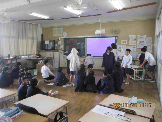 昨日の2年生に引き続き、本日は5年生で、居住地交流がありました。居住地交流とは、学区内から他校に通っている同級生が、年に一度高野小に来て一緒に学習をします。5年3組の教室では、様々な工夫した楽しい交流が行われ、大変盛り上がったようでした。