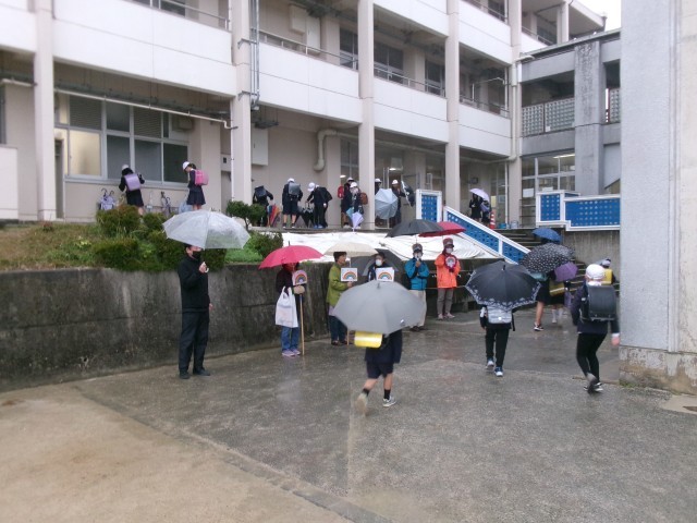 本日は雨が降る中でしたが、いつものように早朝より来校してくださり、気持ちの良いあいさつの声かけをしていただいています。