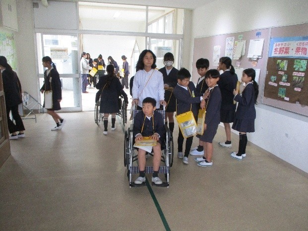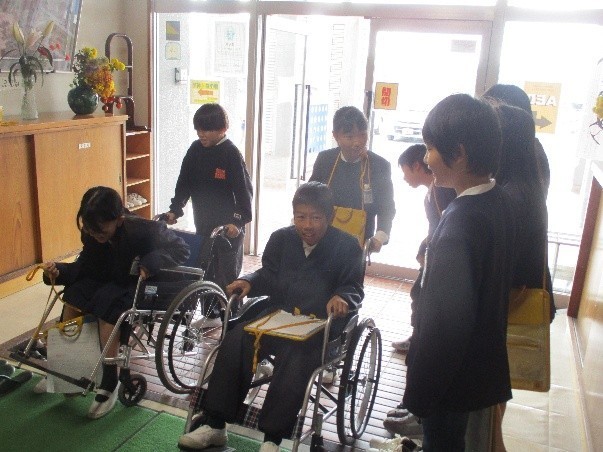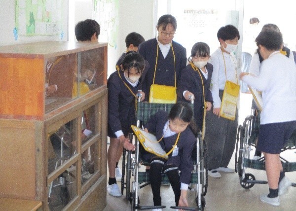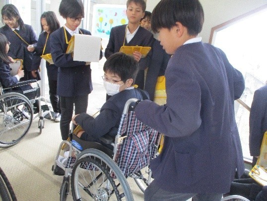 実際の車イス体験では、平らな場所だけでなく、段差のある場所での操作の仕方や、サポートするときに大切にしたい声かけなど、具体的な方法を学びました。子どもたちは、車イスを操作する難しさや、利用する方の気持ちを想像しながら、真剣に取り組んでいました。この学習を通して、福祉や思いやりについて考える貴重な時間となりました。ご協力いただいた津山社会福祉協議会の皆さま、講師の高橋さん本当にありがとうございました。