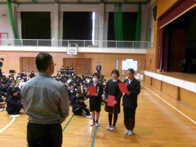 5年生は、11月に、学習発表会でマリの支援米の発表や、新たに立ち上げたマリ支援プロジェクトをスタートさせました。これら一連の取組を経て、今日の「マリ共和国への支援米 贈呈式」となりました。