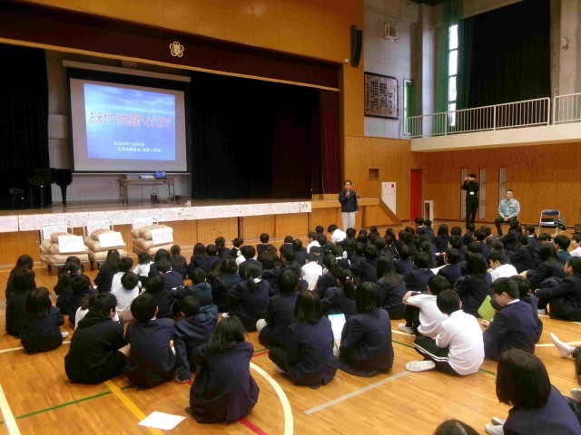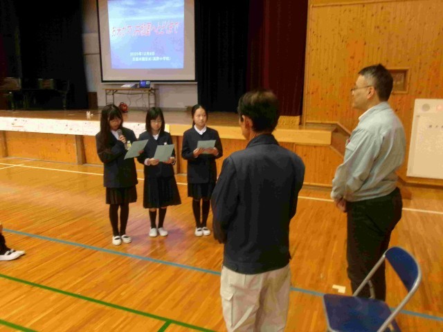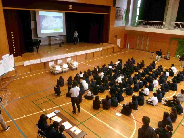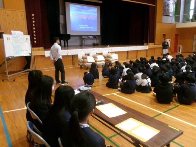 2年生と5年生で会わせて140人が参加し、地域からは河本英敏さん、労農会議のえすみさんが参加してくださいました。津山朝日新聞社の取材もありました。