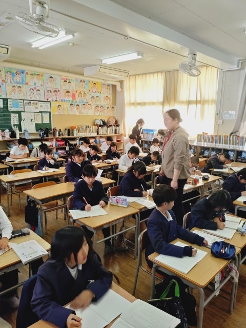本年度、3度目の県外からの本校への視察がありました。本日は、九州の佐賀県多久市から義務教育学校の先生が朝から来校され、本校が取り組んでいる「チーム担任制」について説明、授業見学、質疑を行いました。佐賀県多久市でも「チーム担任制」に取り組み始めたそうです。本年度は、中学年のみ、1週間ごとに担任がローテーションするシステムとのことでした。現在は、加配教員が配置されてのチーム担任制だが、加配教員なしでの本校の取組や全学年実施するための参考にしたいとのことでした。遠路はるばる来校いただいたこともあり、非常に熱心に見学や質疑をいただきました。ところ変わればというお話もお聞きでき、私たちも参考になることが多かったです。