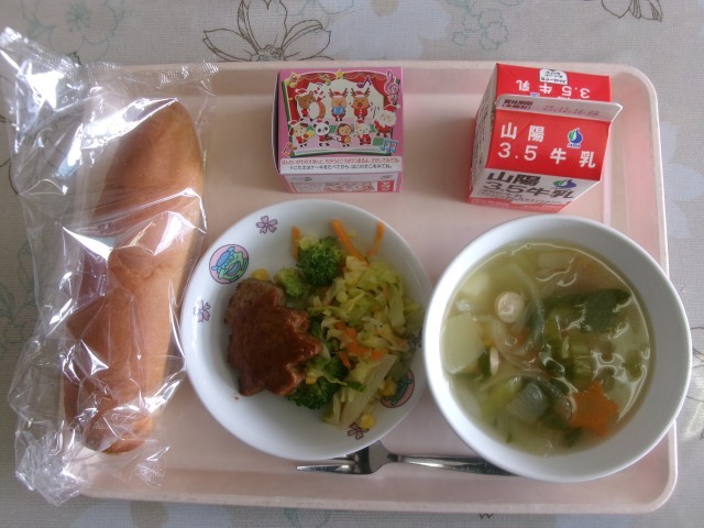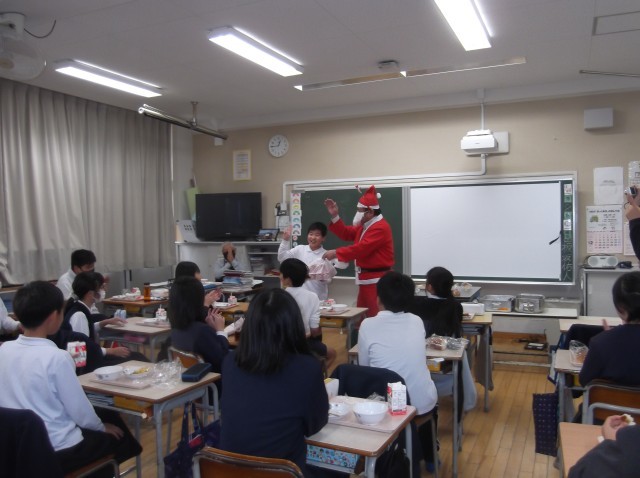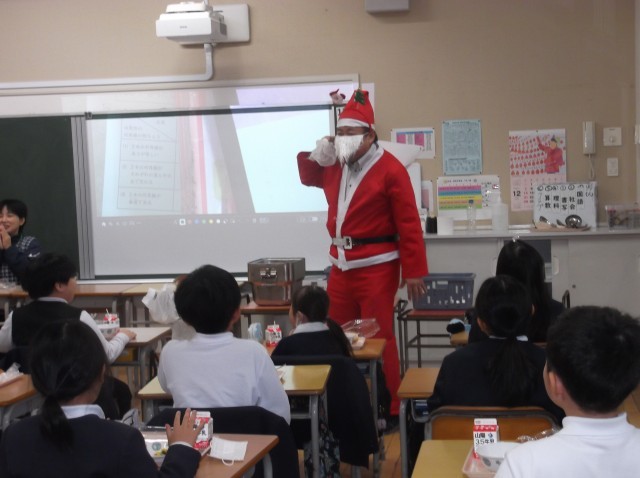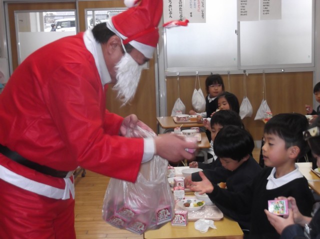 12月8日(月)は朝から子どもたちが、今日は「サンタクロースがやってくるんで!だって、クリスマスこんだてで、クリスマスケーキがでるけんなあ」と口々に言ってくる子がたくさんいました。どこで知ったのでしょうか?