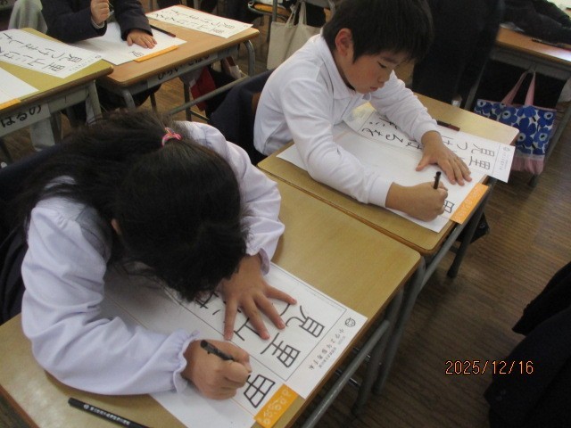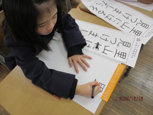 2学期も残すところ1週間ほどとなりました。冬休みの書初めの練習をいろんな学年で取り組んでいます。また、クリスマスソングの練習もこれまたいろいろな学年で取り組んでいました。