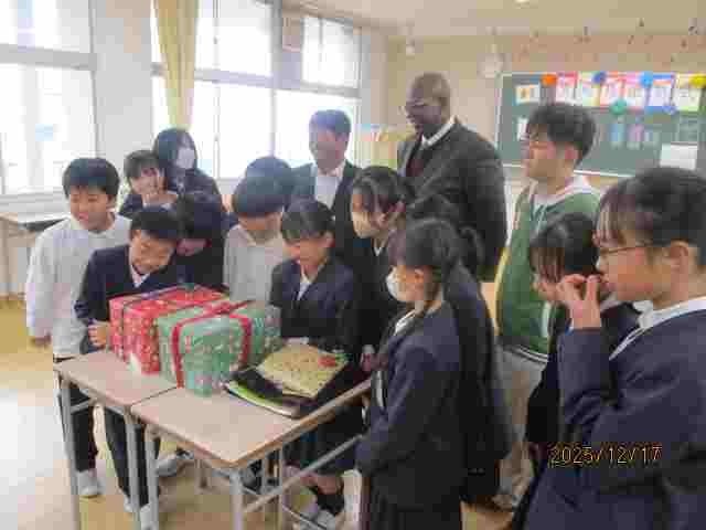 環太平洋大学のサコ先生も大池先生も大変感動され、「高野小学校の子ども達の心が素晴らしい」とおっしゃっていました。素晴らしいオリジナルの贈呈式でした。来年2月には、マリ共和国の子ども達に届くようです。