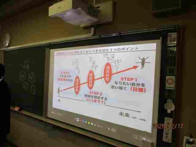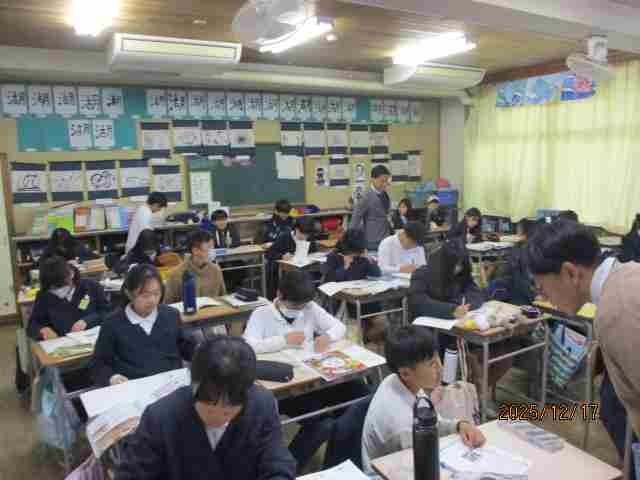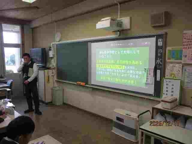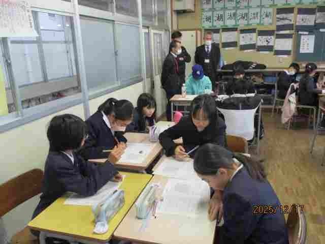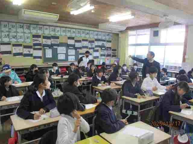 12月17日の3、4校時に、津山東中学校から、河原校長先生はじめ、3人の先生方が来校され、6年生の授業参観や、「中学校に向けて」と題した講話をしてくださいました。子ども達は、普段になく緊張した面持ちで、いつもよりも真剣に話を聞いていました。