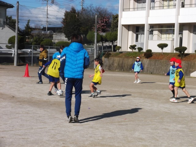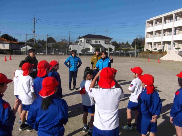 2校時目には4年3組の児童たちと、3校時目には、「ステップ、チャレンジ、ほかほか」学級の児童たちと一緒にサッカーをしてくれました。