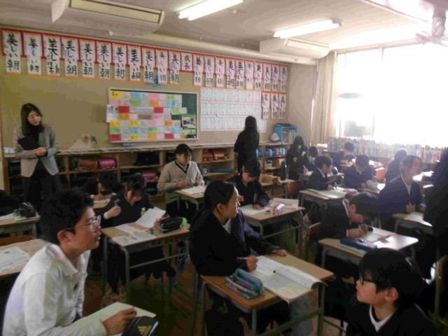 津山市教育委員会の仁木企画参事、向陽小学校の杉本校長も同行されました。本年度から、「チーム担任制」の研究に取りかかり始めたそうです。遠路はるばる来校いただいたこともあり、非常に熱心に見学や質疑をいただきました。前のめりになって授業を受けている子ども達の様子は見られてとても素晴らしいと感想を言われました。