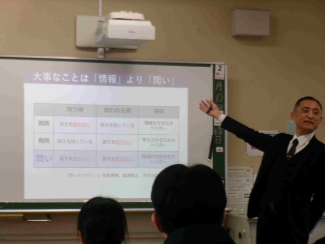 江尻先生は多岐にわたるキャリアをお持ちで、スポーツクラブインストラクター、小学校教員(京都府、東京都、ブラジルサンパウロ日本人学校、岡山県)を経て、岡山県教育庁や文部科学省で勤務されており、「学校現場、教育行政、研究機関をつなぐプロ教育者」としてご活躍されているだけに、本校職員も大いに刺激を受けていました。実は、高岡校長とは岡山県教育庁義務教育課時代に、指導班長と指導主事として一緒に勤務したという関係でした。