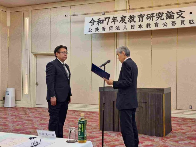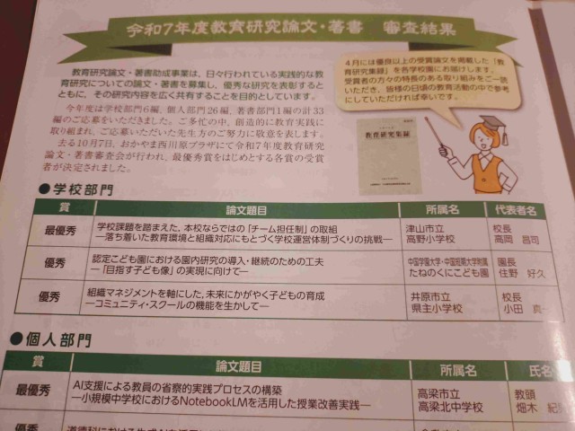 令和6年度から高野小学校が取り組んでいる「高野小チーム担任制」の取組に対して、日本教育公務員弘済会岡山支部から、(学校の部)において【最優秀賞】の表彰を受けました。