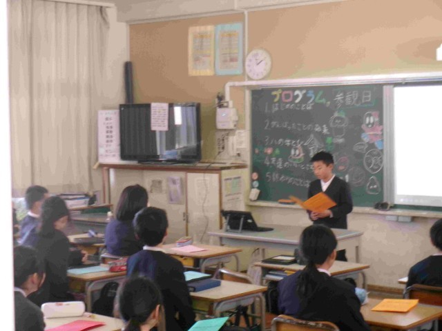 本日、2月19日は、本年度、最後の参観日を行いました。5校時が授業参観、その後、学級懇談でした。授業については、今年1年間で学んだことを個人やグループで発表していました。中には、例えば、学校行事等で成長した自分の気持ちや姿を言葉にしたり、合奏があったりと各学年で工夫した取組をしていました。