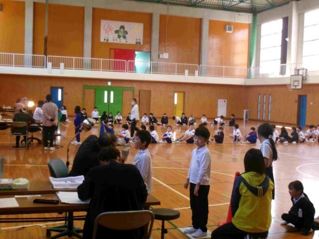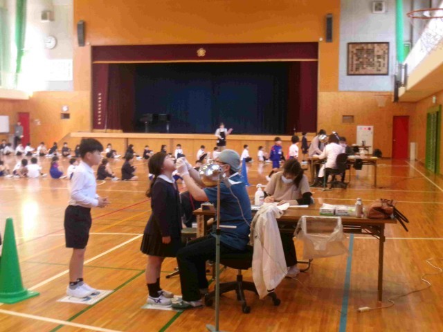 「たくさんの児童の皆さんですが、全学年とも、とても静かに検診をうけていますね」と担当の歯科医の先生よりお褒めの言葉がありました。予定時間よりも効率的に検診が進みました。