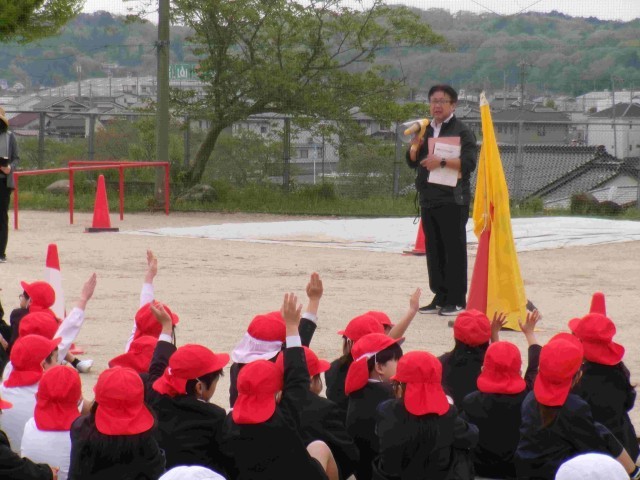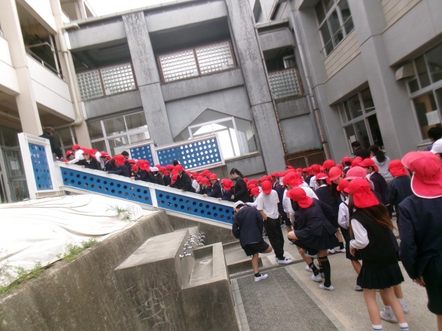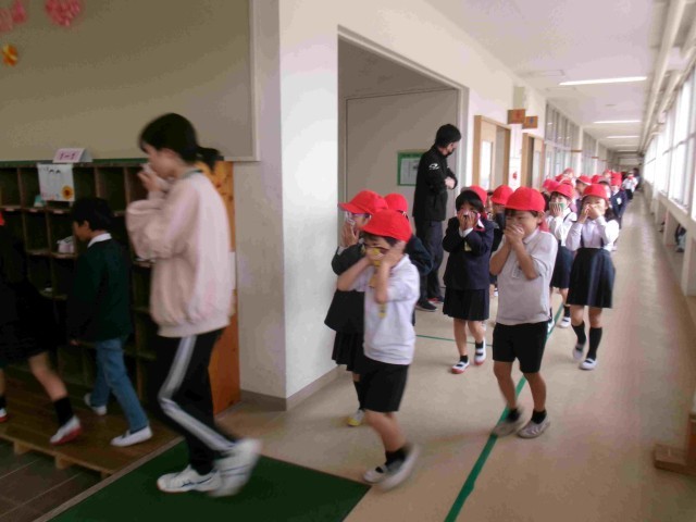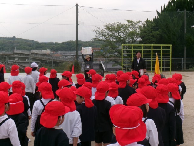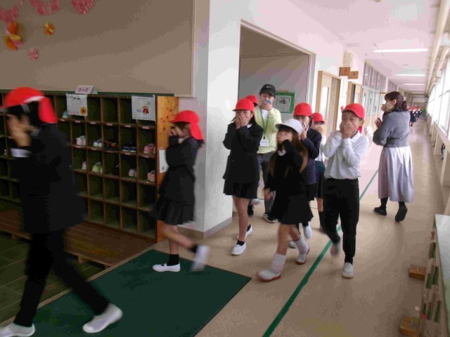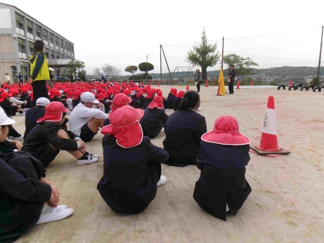 朝からの寒さが、2校時には暖かというより暑くなった日でした。そんな中、本年度第1回目の避難訓練を実施しました。今回は、家庭科室から出火したことを想定した訓練でした。5分以内に静かに全員集合することできました。400人以上児童がいる学校で、整然と移動し、並ぶ姿はとても素晴らしかったです。がんばろうとする子どもたちの姿が光った避難訓練でした。