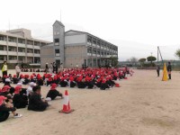 地域や家庭から、たくさん応援の方たちが来てくれて、七輪体験をしました。マッチをするのも初めてだし、火吹き竹を吹くのも初めてです。苦労して焼いたお餅は、おいしかったです。