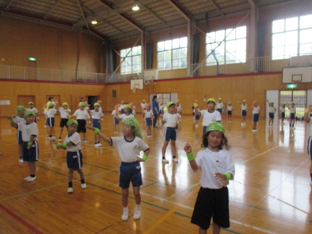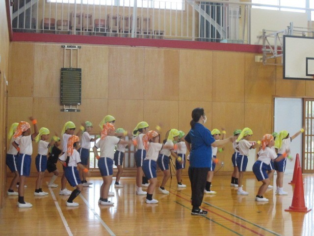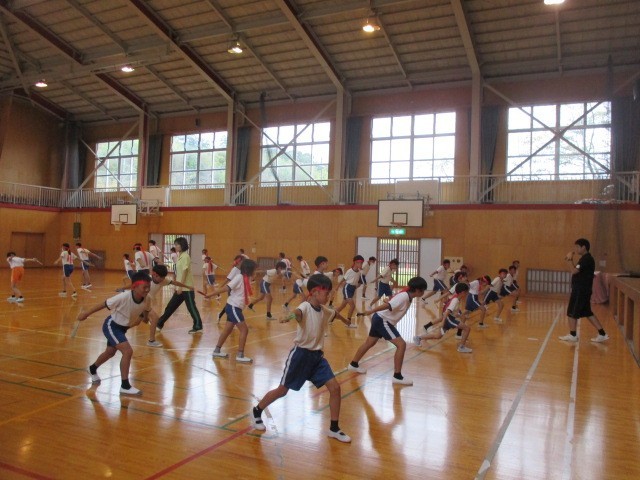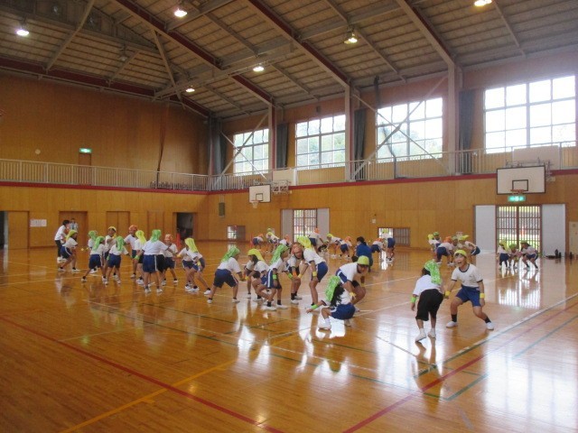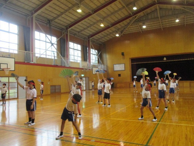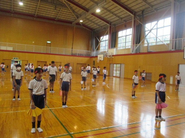 昨日の予行演習を受けて、高学年も低学年も表現の練習に取り組んでいました。今日はあいにくの雨で、グラウンドで練習することができなかったのですが、体育館で細かいところまで一生懸命練習していました。より良い発表を目指し、磨きをかける子どもたちと先生たちです。