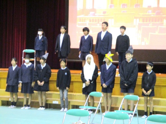 本日1~3校時目に、校内発表会を行いました。運動会が終わってから、本格的に各学年や中学年団、高学年団で練習を積み重ねてきた劇や合奏、音楽物語や学習発表等の成果を披露しました。どの学年も今までに学んできたことや気を付けること等をしっかり意識し、精一杯の力を出し、本気で発表する子どもたちの姿に感動の連続でした。また、鑑賞の態度も素晴らしく、他学年の頑張りに温かい拍手を送るとともに、お友だちの良いところをたくさん見つけ、素敵な校内発表会になりました。