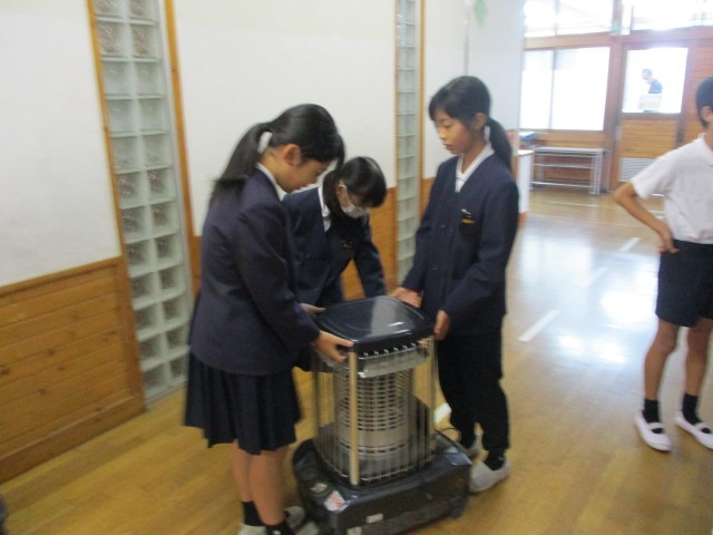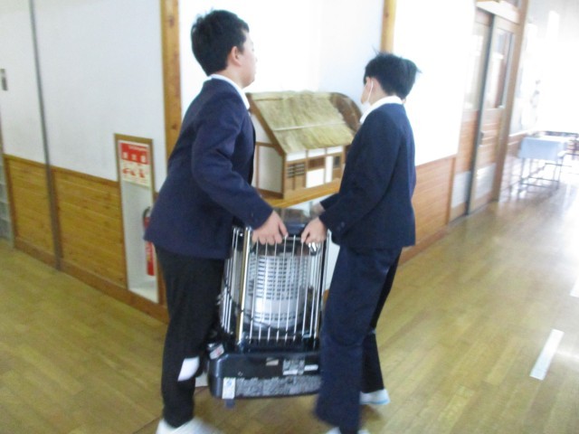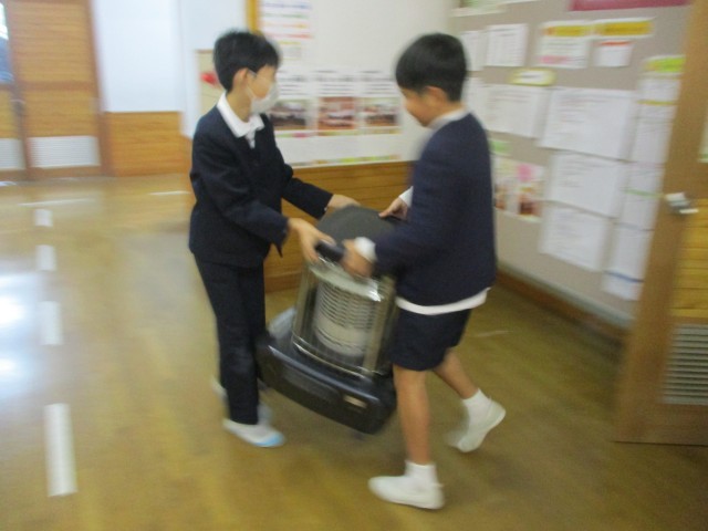 つい最近まで暑くて扇風機を回していたのですが、11月も中旬に入ると朝晩冷え込むようになり、ストーブの出番となりました。毎年、本校では6年生が扇風機の片付けとストーブの搬出をしてくれています。今日は1校時目に6年生全員で協力して重いブルーヒーターをはじめ、暖房器具を各教室へと運んでくれました。2階の教室に持って上がるのは大人の私達でも大変ですが、上手に運んでくれました。6年生の皆さん、ありがとう!皆さんのおかげで暖かい教室で学習できます。お疲れ様でした。