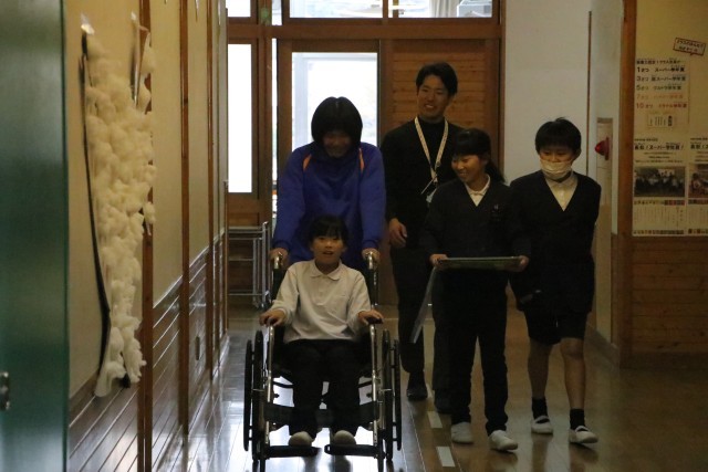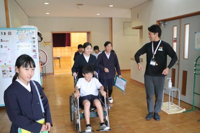 また、5・6校時目には、5年生が車いす体験を行いました。先輩方が体験していたように、5年生になったらあの学習が出来ると張り切っていた5年生。外部講師の方3名にお越しいただき、社会福祉協議会の方や車いすで生活されている方のお話を聞いたり、実際に車いすに乗ったり、車いすを押したりする体験を仲間と一緒に楽しく行うことができました。講師の方への質問もたくさんしたり、車いす操作の難しさを学んだり、充実した体験学習になりました。講師の皆様方、大変お世話になりました。