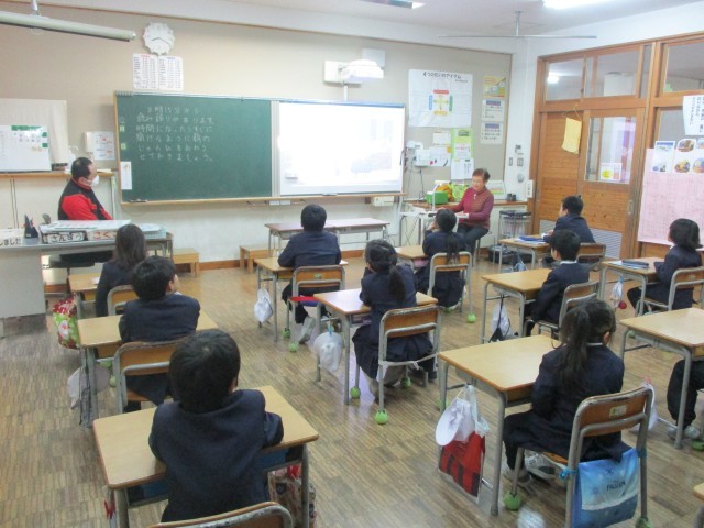 また、今日の朝学習では低学年の読み語りがありました。1年生は「ばばばあちゃんのおもちつき」を、2年生は「クリスマスのまえのばん」を、3年生は「かさじぞう」を読んでいただきました。この時期にぴったりのお話ばかりで、クリスマスやお正月、冬休みが待ち遠しくなりました。