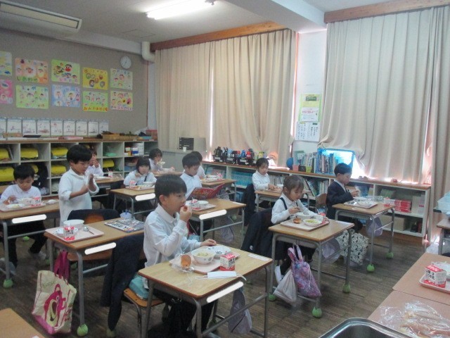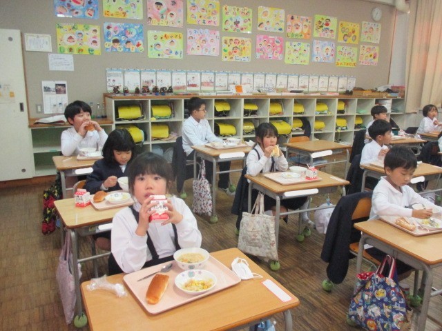 また、今日は2学期最後の給食の日でした。1年生の教室をのぞくと、美味しそうにバターロールパンやシチューを食べていました。草加部学校食育センターの皆様、毎日、安全で美味しい給食を作っていただき、ありがとうございました。3学期もどうぞよろしくお願いいたします。