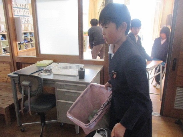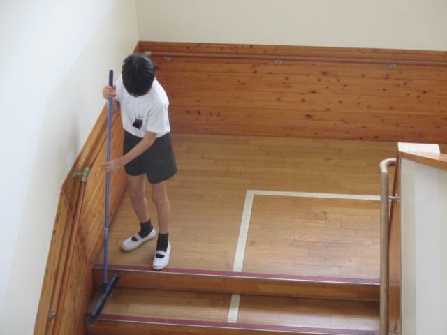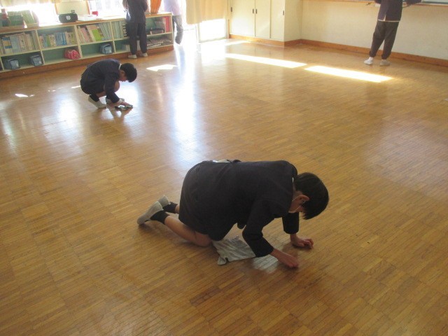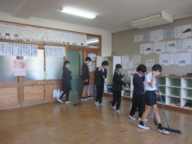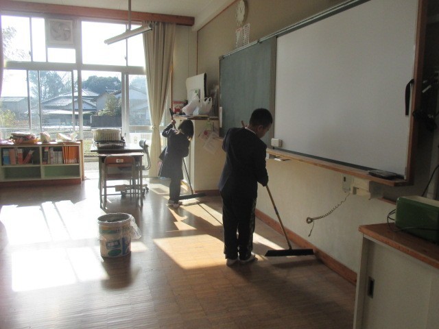 本日3校時目には学期末大掃除を行いました。普段は掃除時間が10分しかないので、なかなかすみずみまでできないのですが、今日は時間もたっぷりあったので、毎日使っている机・椅子も廊下に出して、すみずみまで掃いて、雑巾で水拭きをしました。