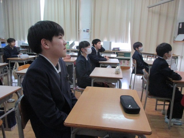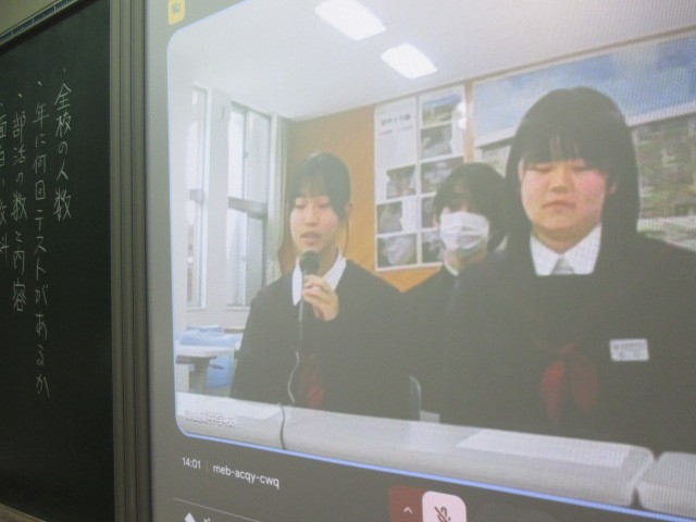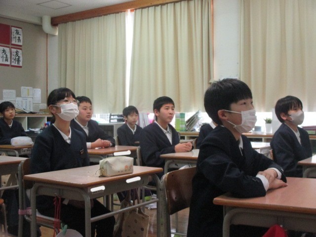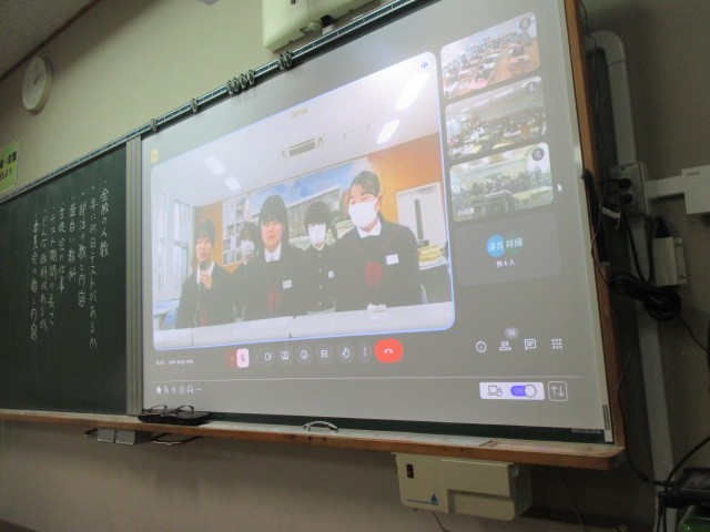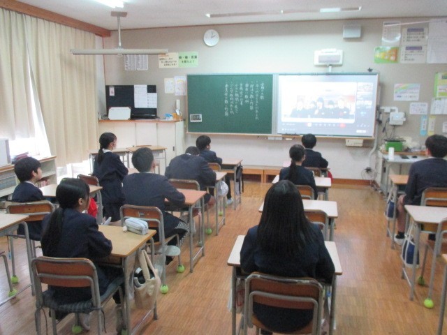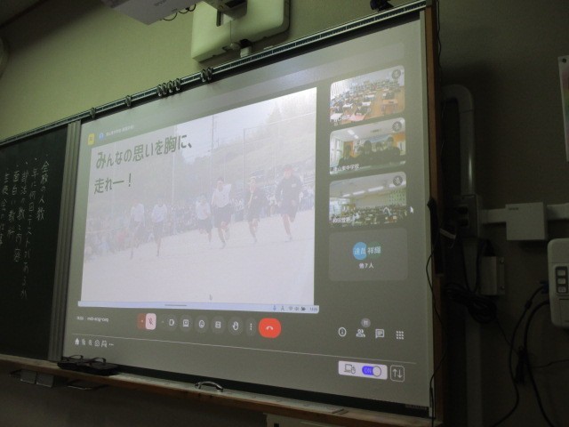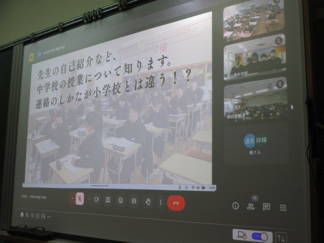 今日の5校時目、14:00から、6年生児童対象に、津山東中学校児童説明会が行われました。津山東中学校と中学校区の7校の小学校とがmeetでつながって、生徒会主催で開催されました。