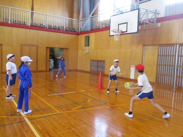 本日の6校時目は、3・4年生の体育の授業でした。体育館に行ってみると、子どもたちがハンドボールのゲームのルール説明を聞いているところでした。4つのグループに分かれ、それぞれが紅白に分かれてゲームをしていました。子どもたちはゲームが大好きです。これから練習を重ねていき、チームで作戦が立てられたりすると、もっと楽しくプレーできると思います。みんなで仲良く体を動かし、健やかな身体を作ってほしいと思います。
