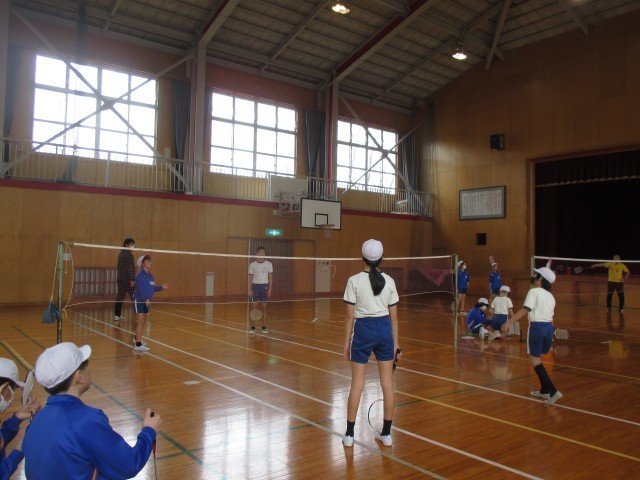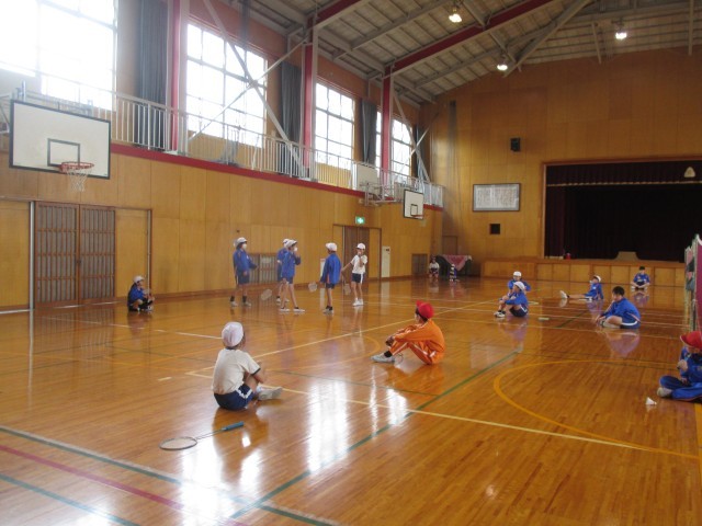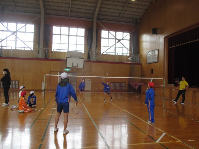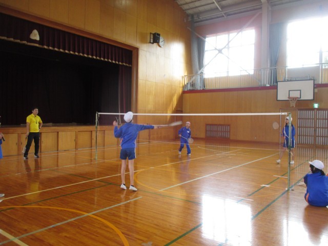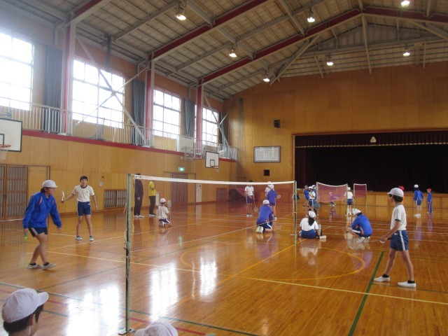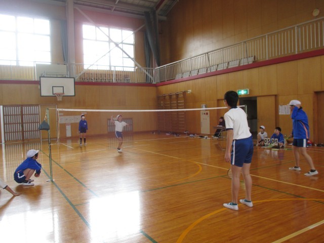 また、5校時目に体育館へ行ってみると、5・6年生が体育の授業でバドミントンをしていました。5・6年生混合のチームで試合をしていましたが、さすがは高学年。サーブも上手く、ラリーも続いて、おもしろい試合が展開されていました。