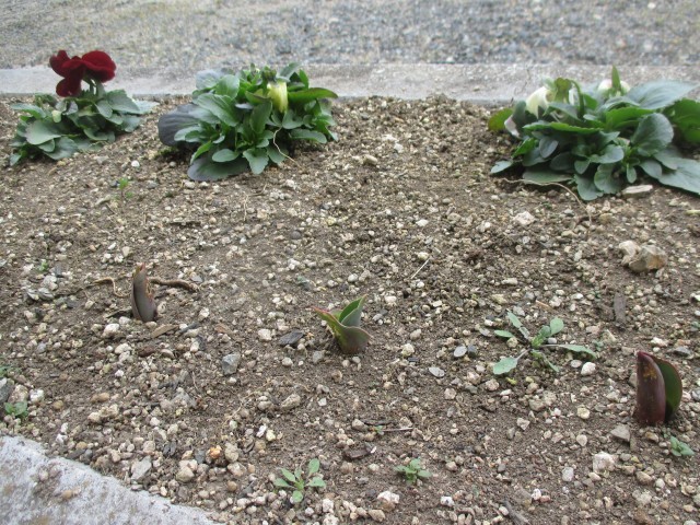 気温がぐんぐん上がった3連休でした。花壇のチューリップの芽も可愛らしくお目見えしています。