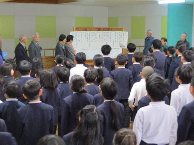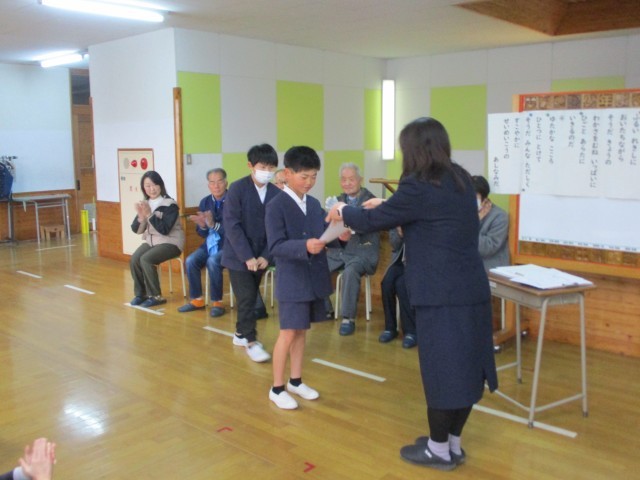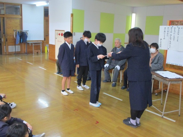 また朝礼のなかで、体育の授業で行ってきた県の事業であるチャレンジランキングの表彰伝達も行いました。バレーパスラリーに繰り返し粘り強く15回取り組んだ5・6年生の3チームが県で3位となり、表彰状が届きました。来年度も学級や学年で、いろんな楽しい運動に挑戦してほしいと思っています。