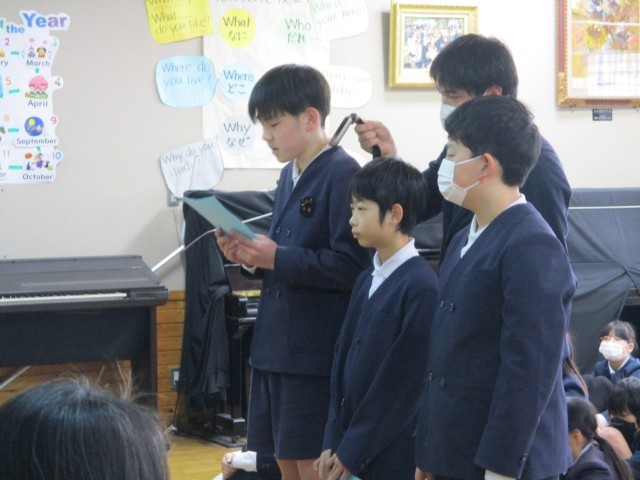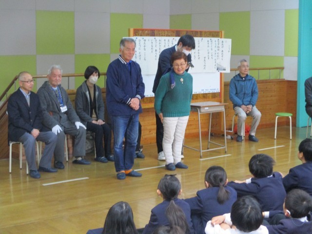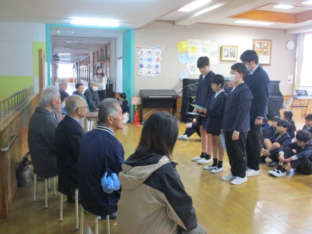 この1年間、学習のさまざまな場面でお力を貸してくださったボランティアの皆様へ「ありがとう」の気持ちを届ける感謝の集いを本日の学校朝礼にて行いました。コミュニティ・スクールとなって3年が終わろうとしていますが、この会を是非とも実施したいと考えていましたが、今年度実現することができました。9名の方が参加してくださいました。司会も6年生児童が担当してくれ、普段の学校朝礼の中で行われる月の目標発表や担当の先生のお話の後、6年生児童のお礼の言葉、地域学校協働活動推進員のお二方のお話があり、最後に感謝の歌;校歌を元気よく歌って気持ちを届けることができました。ご参加いただきました皆様方には早朝よりお集まりいただき、ありがとうございました。どうか来年度も地域の皆様方とつながる活動を行っていきますので子どもたちの学びのサポートをよろしくお願いいたします。
