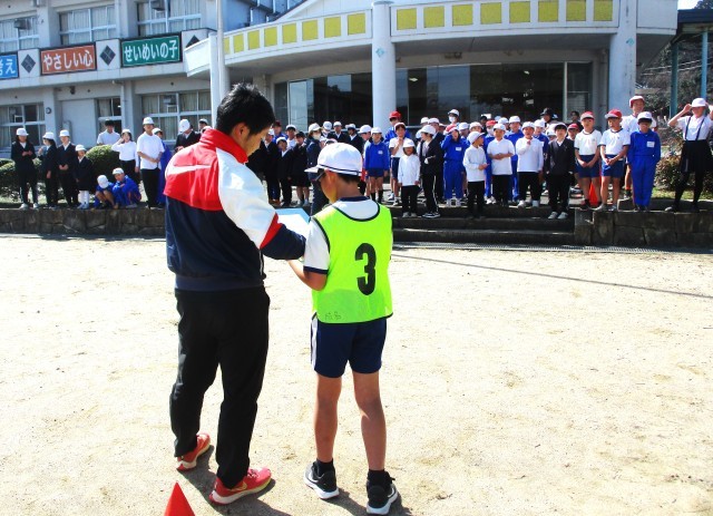 今日は、青空が広がり、気温も上がって気持ちの良い日になりました。感染症の流行等により延期になっていた体育委員会による逃走中が昼休みに行われました。首を長くして待っていた今日の集会。給食のビーフカレーライスを時間内に食べ、全校児童がグラウンドに集合し、体育委員会の開会で始まりました。体育委員と教職員がハンターとなり、子どもたちを必死で追いかけます。タッチされたらランチルーム前の枠の中に入り、待機です。途中には、体育委員会からのミッションも出され、子どもたちはクリア目指して走ったり、考えたりしていました。2回戦行いましたが、逃げる人も追いかける人も応援する人も、みんなが笑顔いっぱいで楽しい時間となりました。来年度もしっかり体を動かすことができるイベントを体育委員会に考えてもらい、みんなで仲良く運動できたらと思います。