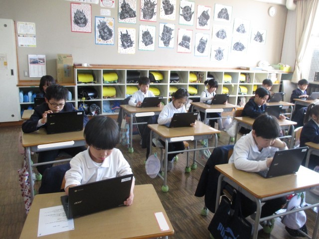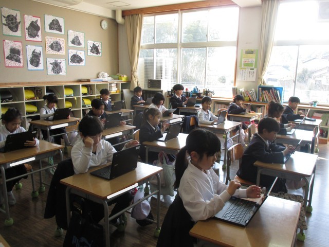 1年前の今頃は幼稚園やこども園で卒園式の練習をしていた1年生。成名小学校に入学してからの1年間で、多くのことを学び、大きく立派に成長しました。今朝の朝学習の様子をのぞくと、全員が静かにクロムブックに向かって、国語や算数の問題に熱心に取り組んでいました。AIドリルのnavimaを使って、今までに学習したことの復習を自分で問題をチョイスしながら、黙々と取り組んでいました。端末を上手に操作できていましたし、画面にタッチして文字を書く際にもとても丁寧に書くことができていました。確実な学びに繋がっているなと感じました。