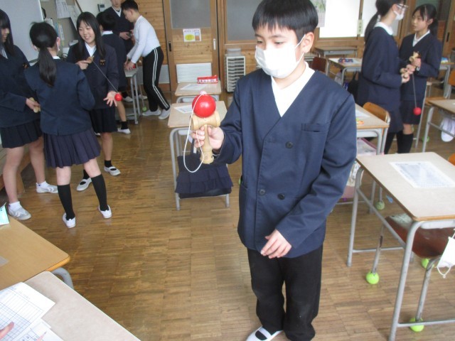 最後に、先週金曜日の5校時目、6年生が小学校生活最後のけん玉検定を行いました。普段は委員会の常時活動等があり忙しい6年生。なかなかけん玉に没頭することが出来ない現実がありましたが、それでも今まで培ってきたことを発揮して、多くの人が昇級しました。卒業しても息抜きや一発芸で、いや、もちろん本気でもOK!是非けん玉を続けてくださいね。